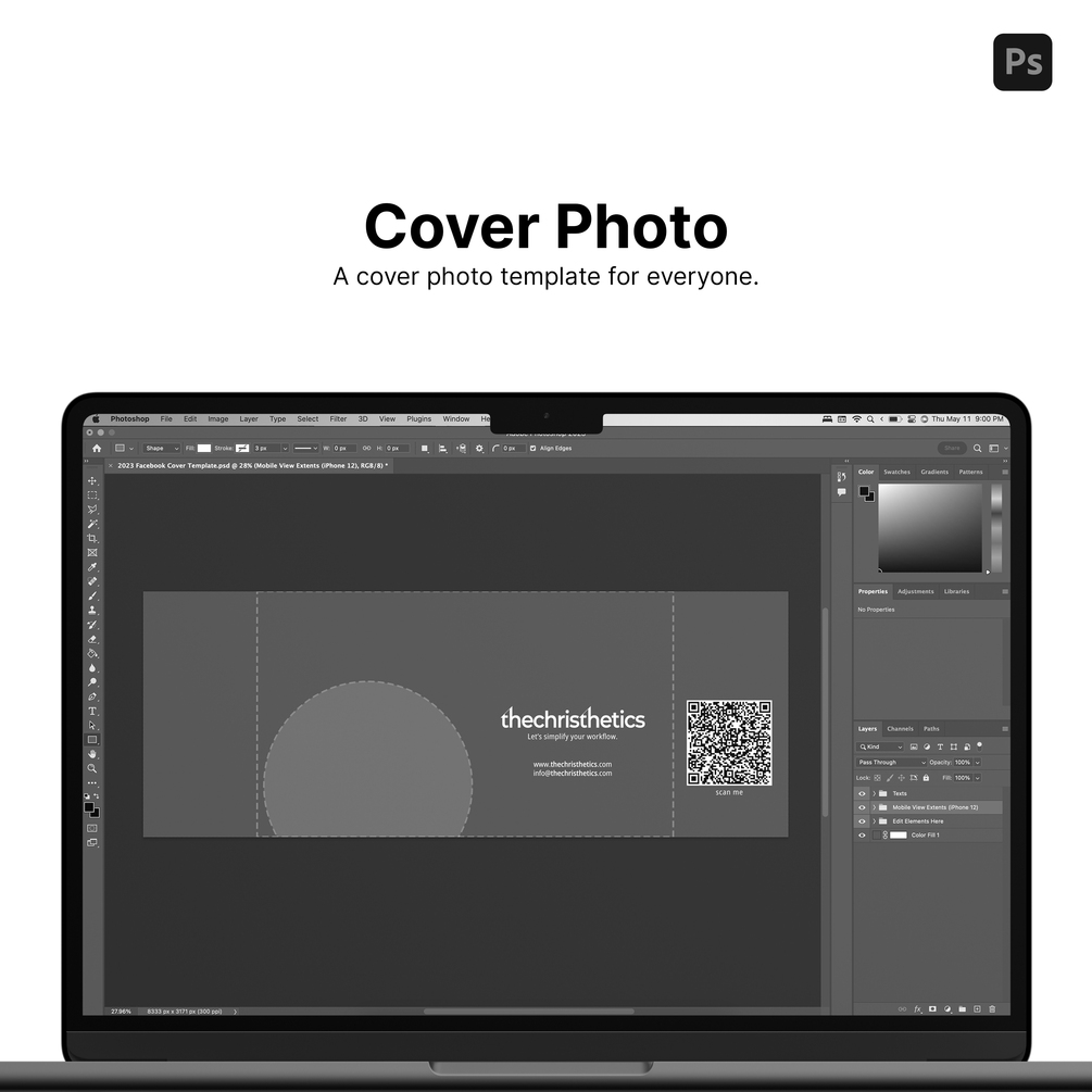 Introducing our latest product - an editable Photoshop template of Facebook's 2023 profile page cover! Our template is designed to give you complete control over your Facebook cover photo, with easy-to-use layers and customizable features that make it easy to create a unique and eye-catching profile page.