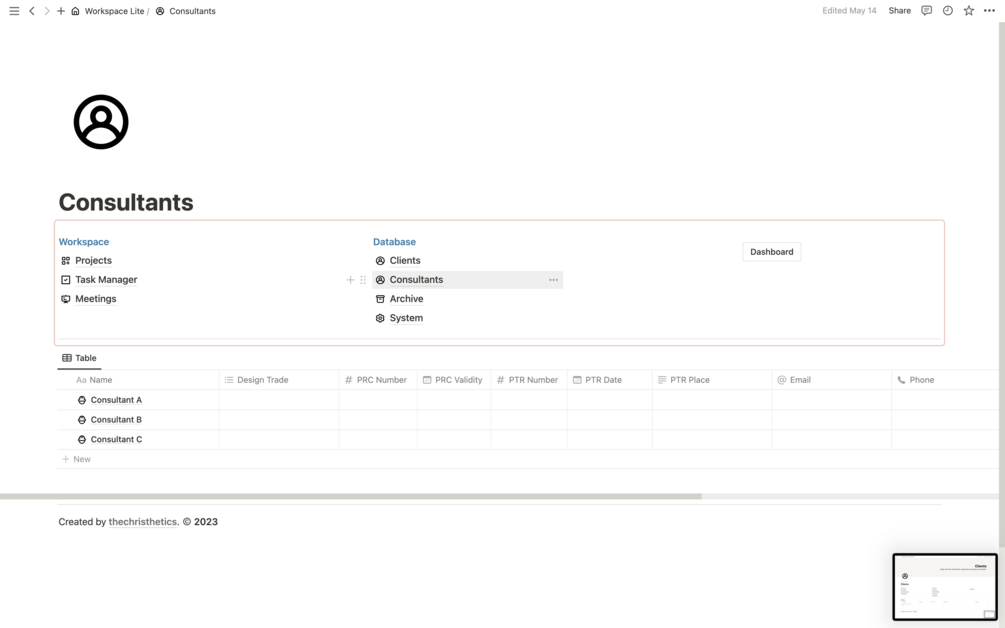 - Consultants Database: The Consultants Database section allows you to store all your consultants' contact information and professional details in one place. You can easily add new consultants, view consultant details, and keep track of consultant interactions.